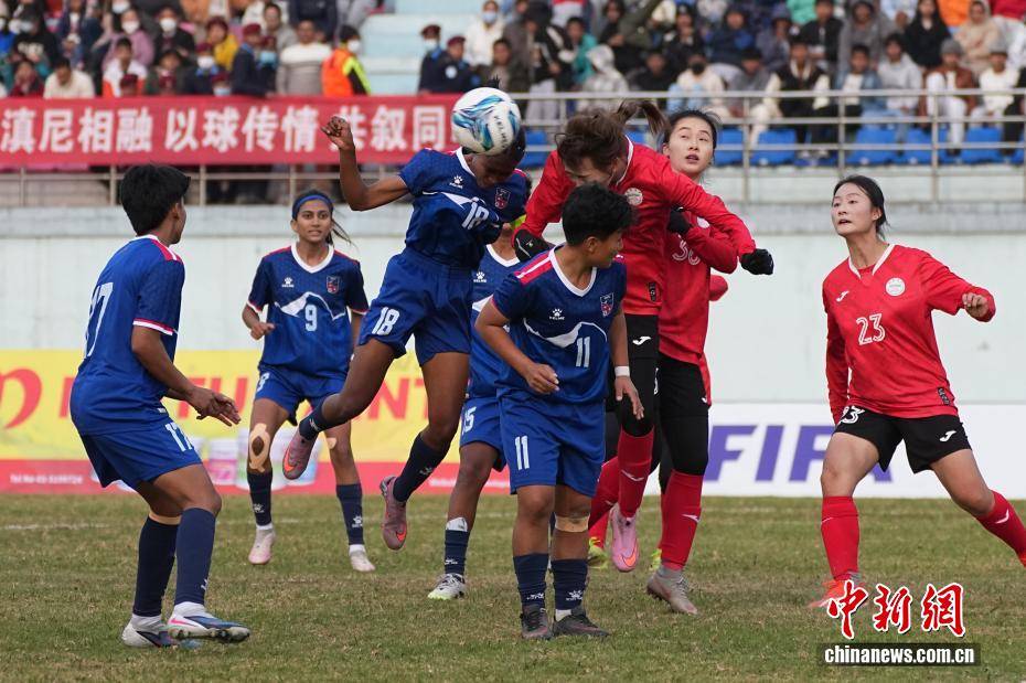 1月31日,第三届“贺岁杯”中尼友谊足球赛在尼泊尔首都加德满都举行,比赛在中国云南女子青年队与尼泊尔女子青年队之间展开。双方本着“友谊第一,比赛第二”的精神在场上拼搏。图为中尼两国女足队员在场上拼抢。中新社记者 崔楠 摄